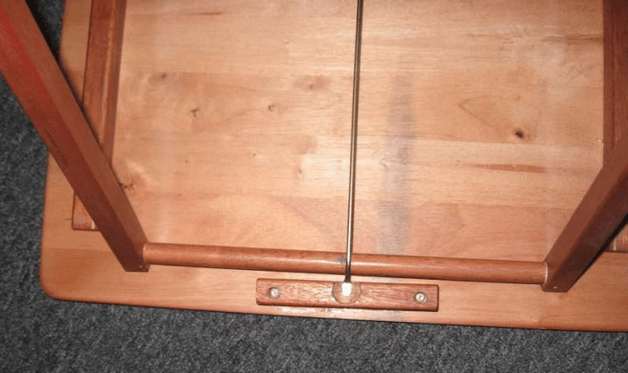 Приспособление можно сделать с винтовым зажимом или самоподжимным. В любом случае, бруски усилят и зафиксируют каркас с ножками, тем самым устранят имеющийся люфт.