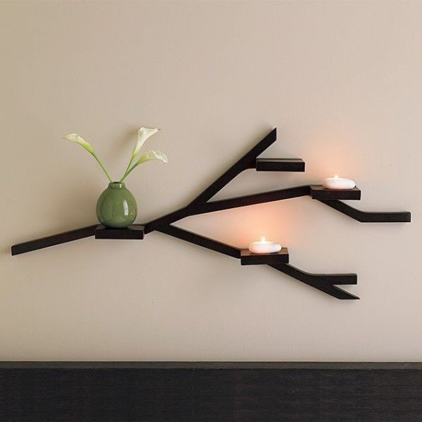 Самая простая конструкция подразумевает 1 площадку с декоративным ограничением по бокам. Можно изготовить полку в виде нескольких параллельных полок с едиными боковыми стенками. Наибольшей популярностью пользуются конструкции из нескольких площадок на разных уровнях, причем они могут иметь одинаковую или разную длину, частично перекрывать друг друга или направляться в разные стороны.